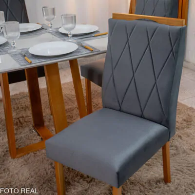 - Assento e encosto revestido em veludo;